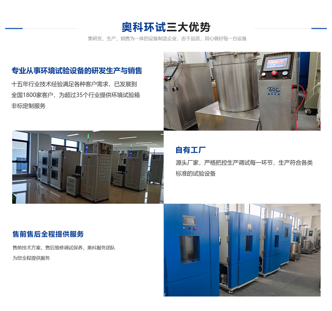 安徽奧科試驗(yàn)設(shè)備有限公司隸屬于杭州奧科環(huán)境試驗(yàn)設(shè)備有限公司直屬分公司,是一家從事各種試驗(yàn)設(shè)備研發(fā)、生產(chǎn)與銷售一體的技術(shù)單位??偣緭碛袕?qiáng)大的技術(shù)團(tuán)隊(duì)及科學(xué)嚴(yán)謹(jǐn)?shù)纳a(chǎn)流程,鑄就了產(chǎn)品質(zhì)量。公司本著“以質(zhì)量求生存,以信譽(yù)求發(fā)展”的原則,為科研、軍事、航空、電子、汽車(chē)、石油、化工、醫(yī)療、通訊等各大院校和企事業(yè)單位提供符合GB、GJB、IEO、ISO、ASTM、MIL、DIN等標(biāo)準(zhǔn)的各類環(huán)境試驗(yàn)設(shè)備,并可根據(jù)用戶的需求設(shè)計(jì)制造各類非標(biāo)性設(shè)備。奧科奉行“進(jìn)取求實(shí)嚴(yán)謹(jǐn)團(tuán)結(jié)”的方針,不斷開(kāi)拓創(chuàng)新,以技術(shù)為核心、視質(zhì)量為生命、奉用戶為上帝,竭誠(chéng)為您提供高性價(jià)比的自控產(chǎn)品及無(wú)微不至的售后服務(wù)。
